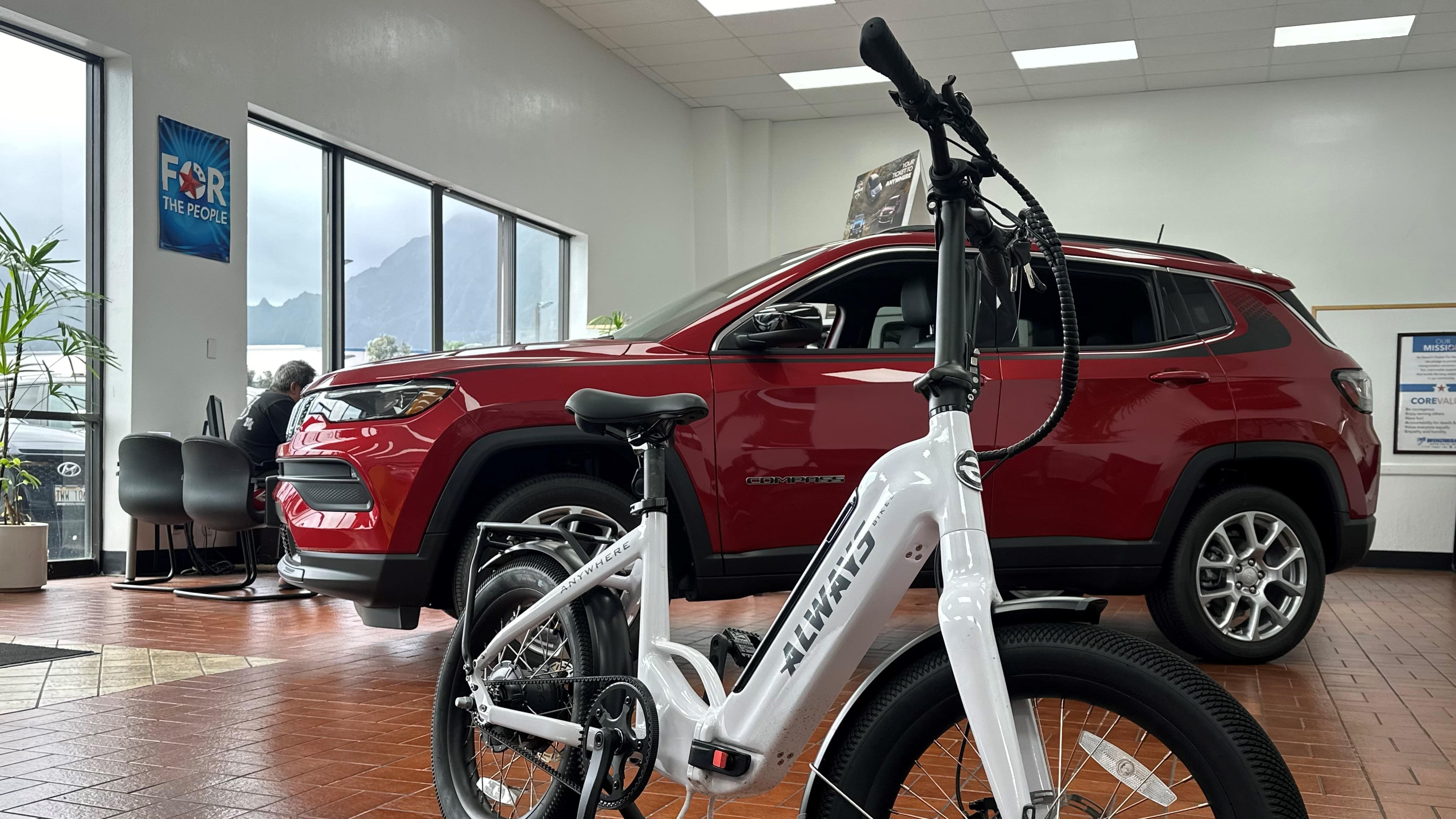 E-bikes, such as this Always model on display at Windward Chrysler-Dodge-Jeep-Ram in Kaneohe, Hawaii, are popular on Honolulu's many bike paths.